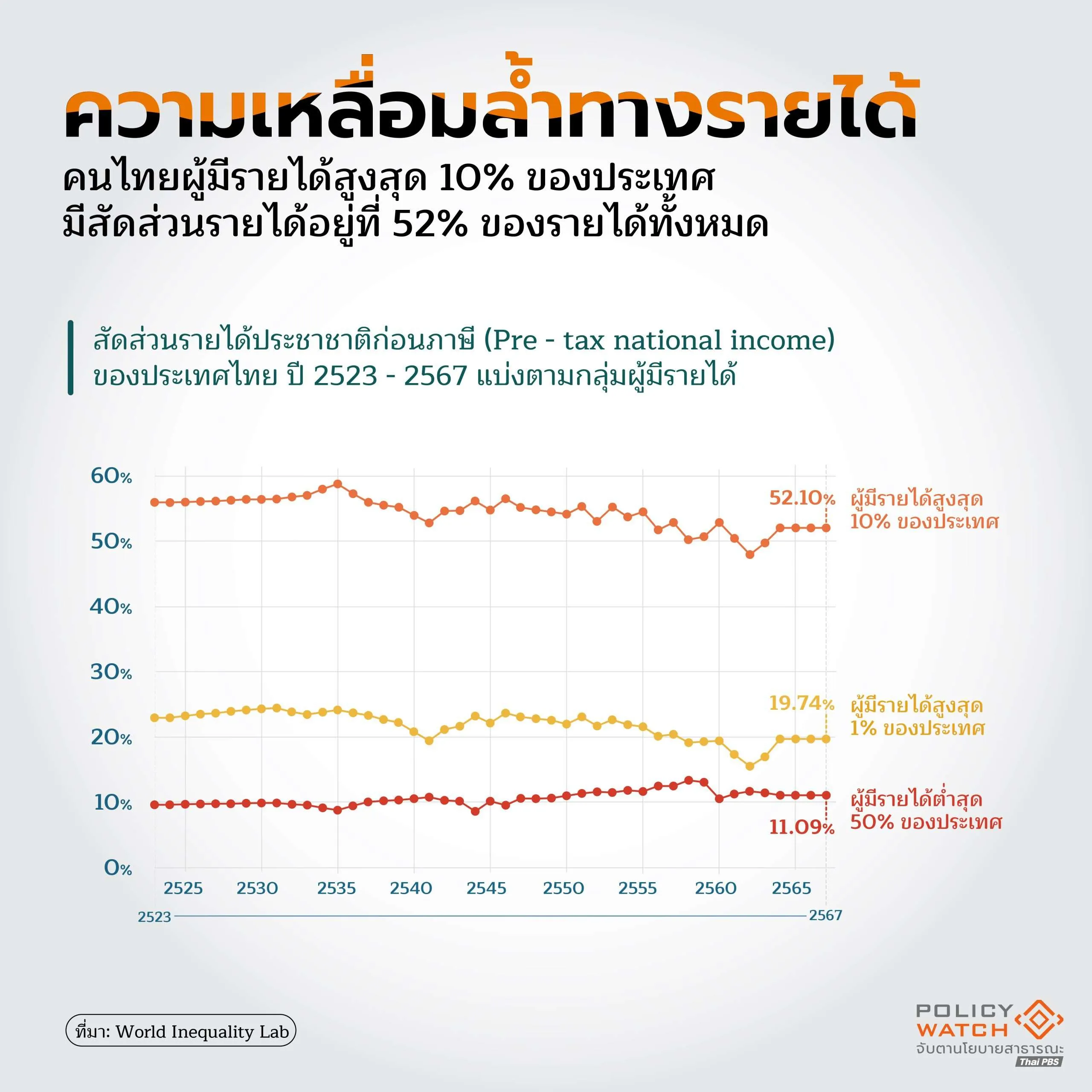 อ่านเพิ่มเติม: ความเหลื่อมล้ำโลกรุนแรง ไทยติดกลุ่มหนักสุดในโลก