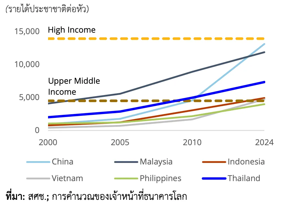ไทยก้าวสู่ประเทศรายได้ปานกลางระดับบนในปี พ.ศ. 2554 แต่การเติบโตทางเศรษฐกิจยังไม่เร่งตัว
