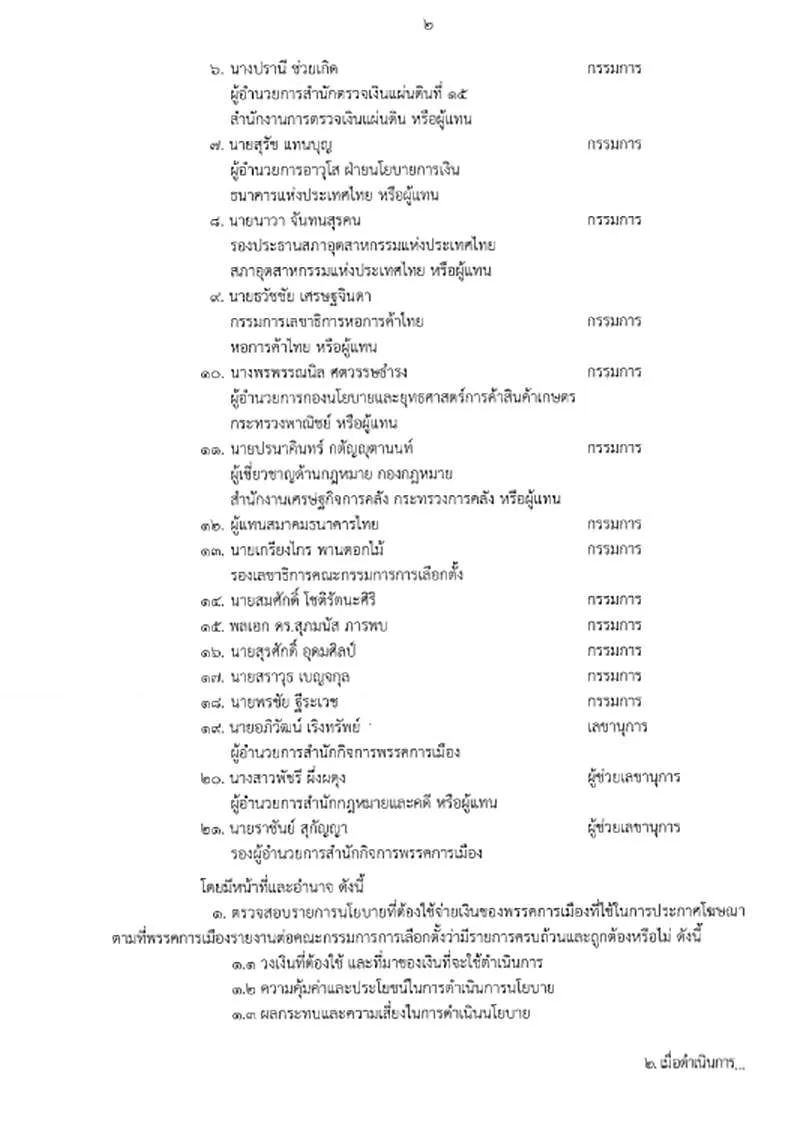 ซึ่ง กกต.ได้มีคำสั่งคณะกรรมการการเลือกตั้ง ที่ 7/2569 แต่งตั้งคณะกรรมการตรวจสอบนโยบายที่ต้องใช้จ่ายเงินของพรรคการเมืองที่ใช้ในการประกาศโฆษณา โดยมีกรรมการ ทั้งหมด 21 คน มี นายแสวง บุญมี เลขาธิการกกต. เป็นประธานกรรมการ พร้อมด้วยผู้เชี่ยวชาญในด้านต่างๆ