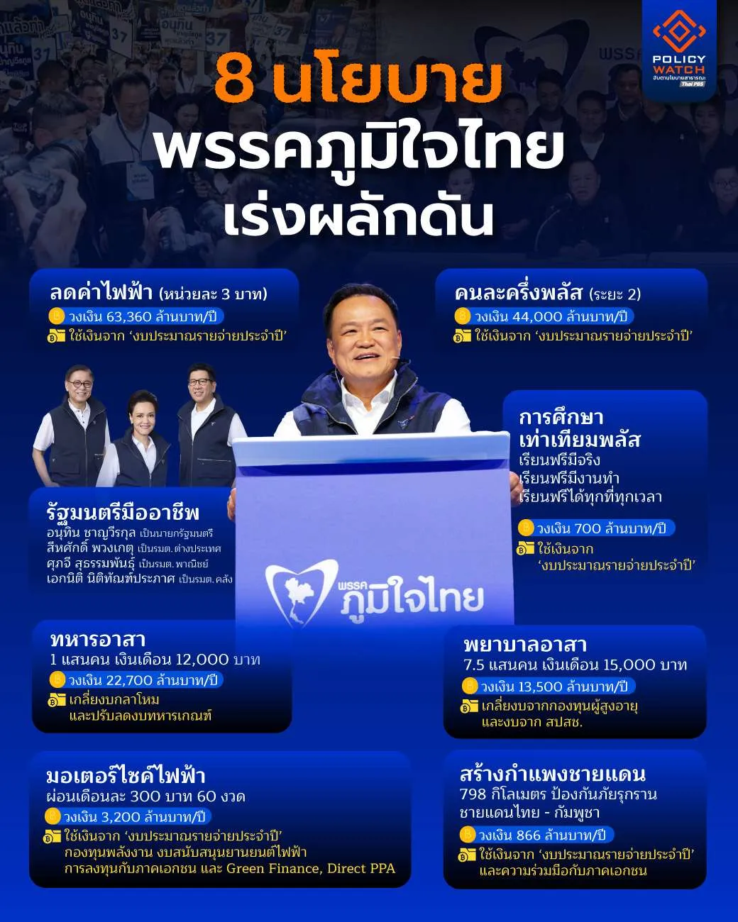 8 นโยบาย”ภูมิใจไทย”พูดแล้วทำ