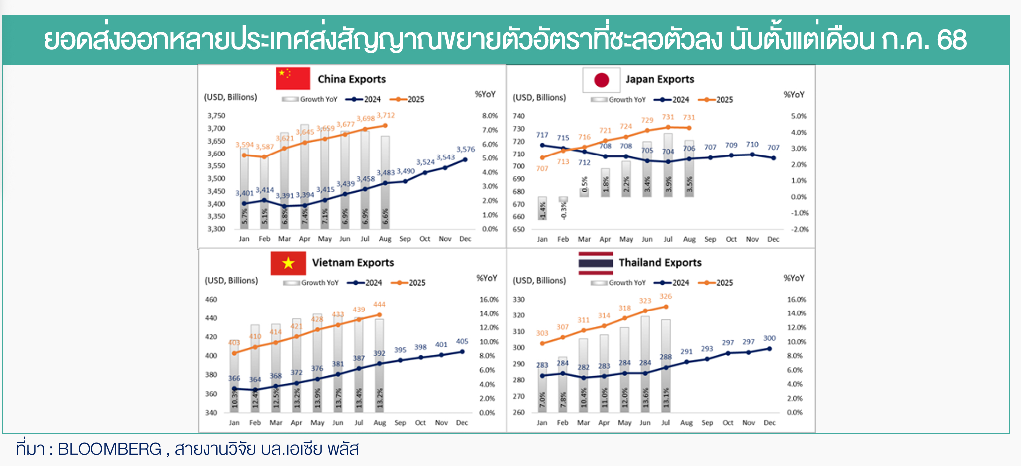 ส่งออกไทยเริ่มแผ่วปลายปี 68