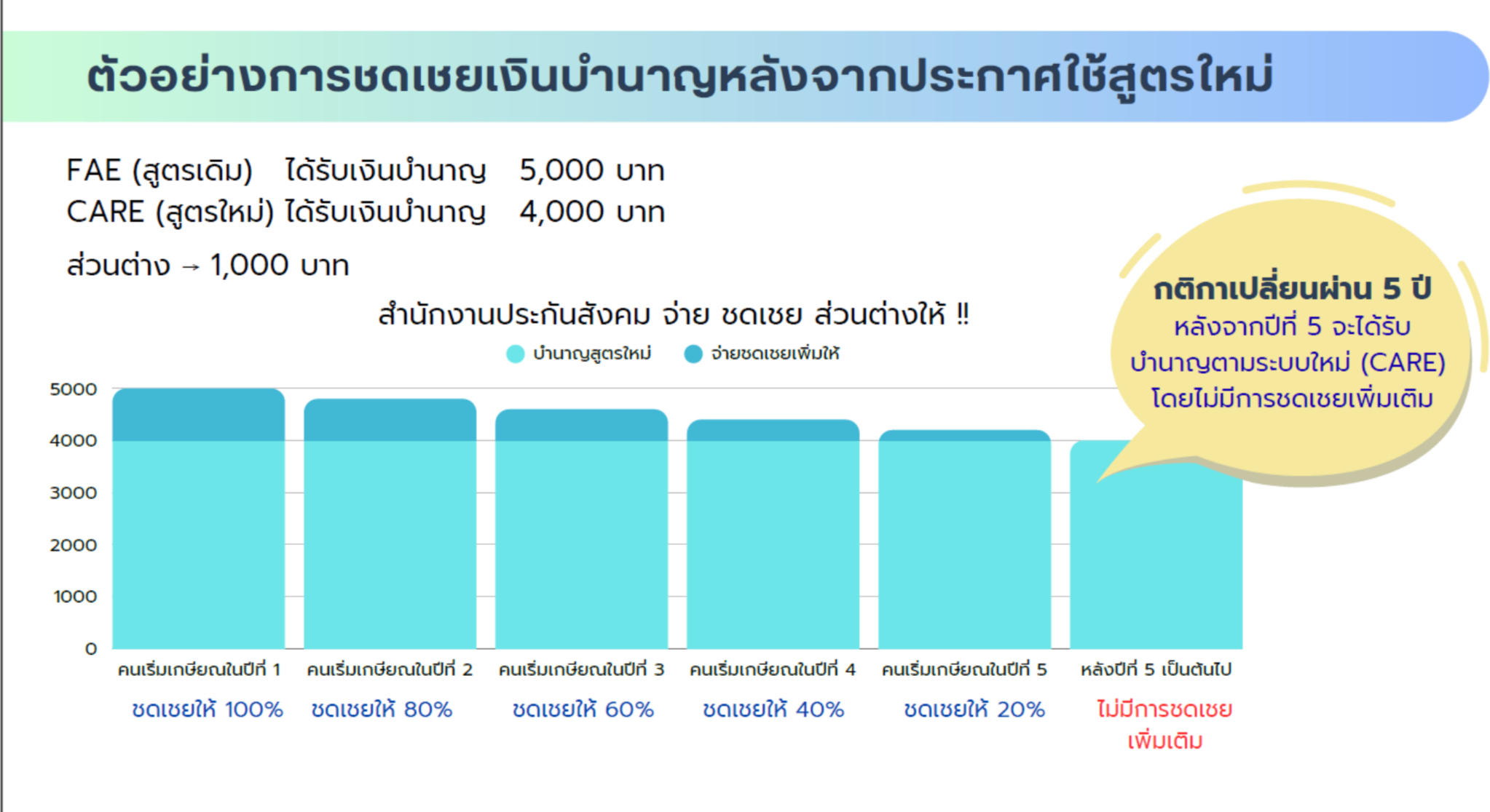 หากสูตรเดิมได้มากกว่า จะได้รับบำนาญตามสูตร CARE + เงินชดเชยส่วนต่าง